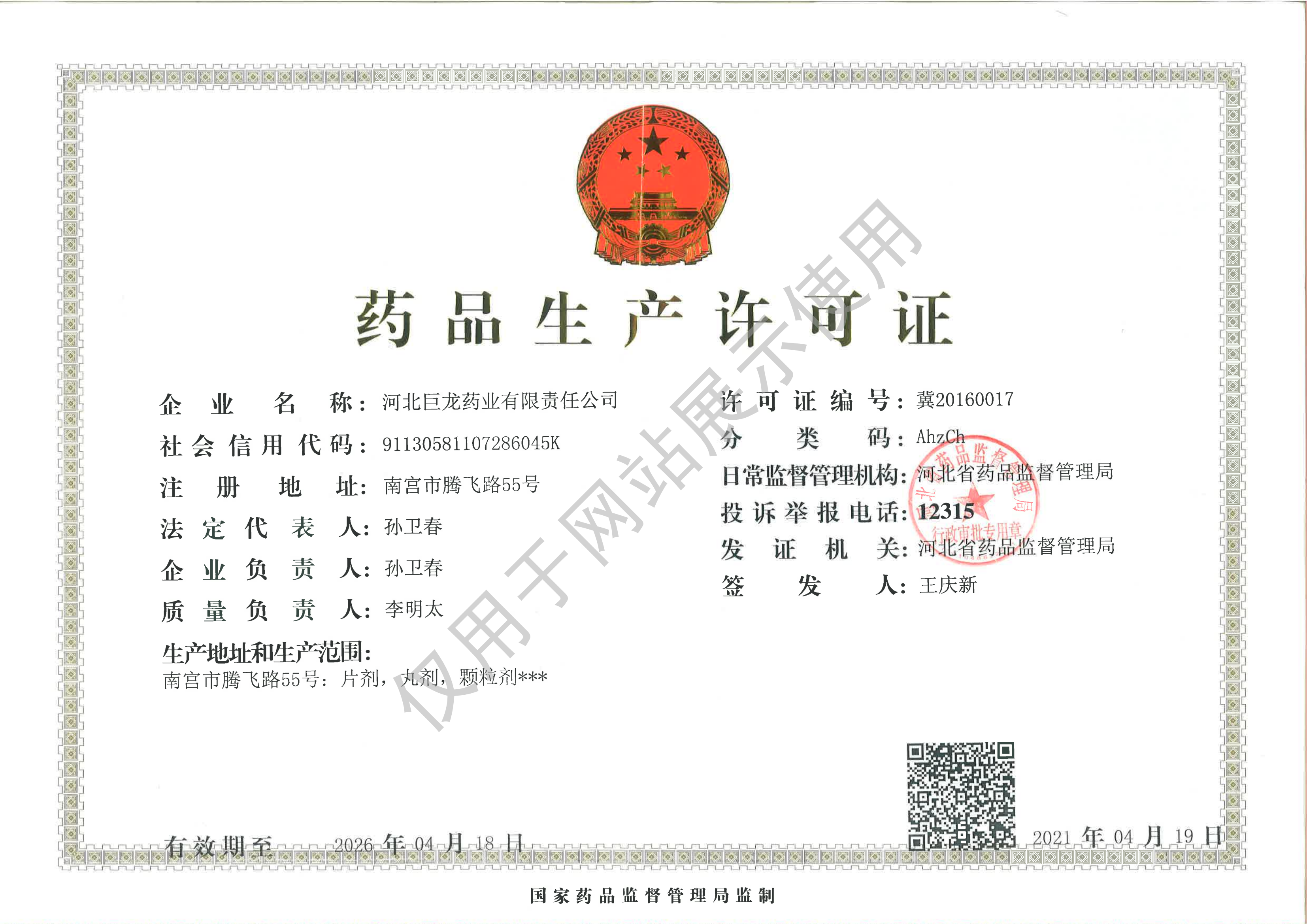河北巨龍藥業有限責任公司,位于南宮市東部工業聚集區,是一家集生產、銷售、科研為一體的中、西藥品生產企業;是河北省醫藥行業協會主席團企業、省高新技術產業化示范企業、省誠信企業、省高新技術產業協會理事、省著名商標企業,南宮市的一家藥品生產企業。其前身南宮市制藥廠,1973年建成并投產,1996年依法破產,1999年改制重建成股份制企業。2005年由河北鑫春建筑建材有限責任公司整體買斷收購,其后陸續(xù)注入資金2000多萬元,開發(fā)并上市了原國家中藥四類新藥(獨家品種)小兒清肺顆粒,被認定為省高新技術產業化示范基地。2015年企業通過新版藥品GMP認證。
